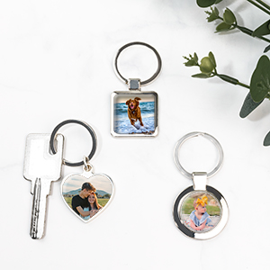 We have a selection of styles for you to choose from to help you show off your new stunning and striking keychain, you can choose to use aluminum, acrylic or metal. As well as numerous different shapes such as, button shape, round, square and dog tag shape for your set of keys. All personalised keychains come with a elegant velvet drawstring bag to finish off your sophisticated gift. All keychains are constructed from solid, durable laminate material with a gloss smooth finish to ensure that your image will stay intact from many years of use.