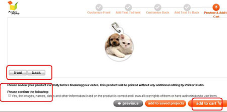 You will see a preview of your personalised item at this step. Click previous button at the bottom of the page if you need to make any changes to your design.