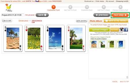 - Click 4 images to personalise the fronts of your cards with 4 photos.