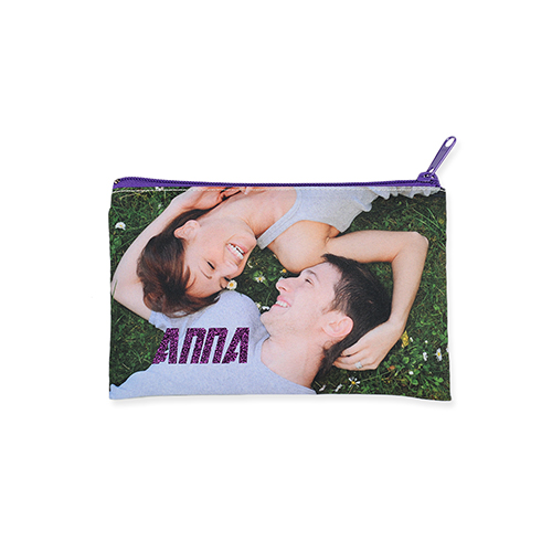 Our 5x8 personalised image glitter text cosmetic bag with a purple zip fastener made with high quality polyester is durable and can hold a number of beauty products. Our cosmetic bags comes in a range of 14 zipper colours and 12 lining colours to choose from to match all your outfits. This makes a perfect gift for your friends, mum or teachers.